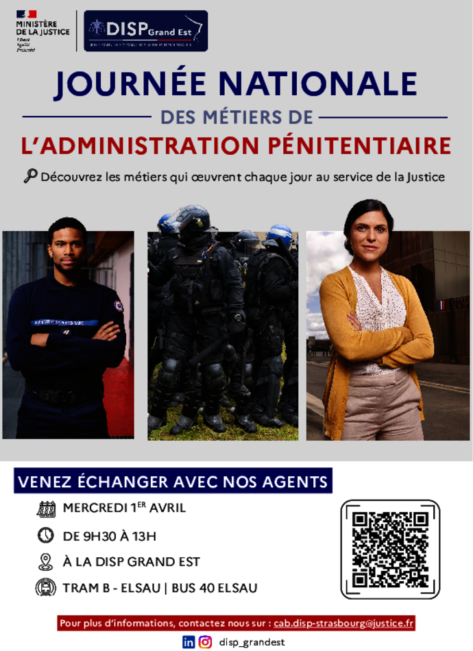 Dans le cadre de la journée nationale de l’administration pénitenitaire, la Direction Interrégionale organise une journée portes ouvertes au sein de ses locaux, au cours de laquelle des professionnels de terrains seront mobilisés pour évoquer leur parcours et leurs missions.